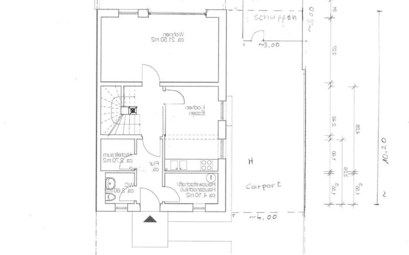 Carport: | mit 2 Stellplätzen ca. (B 4,00 m x L 10,20 m) |