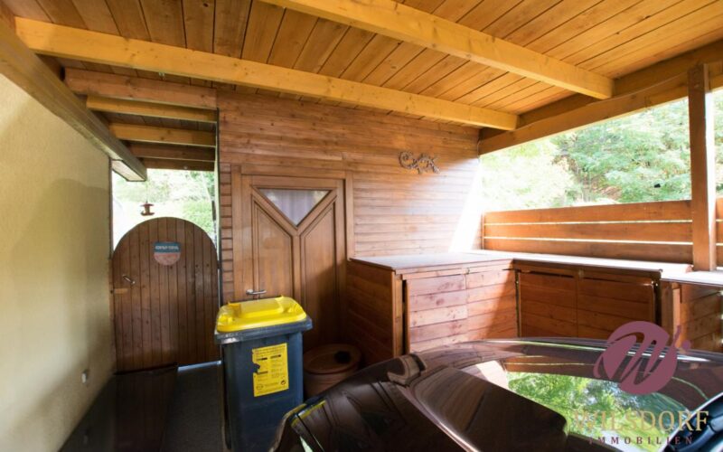 Die Autos stehen geschützt im geräumigen Carport. Alle Gartengeräte, die Fahrräder und vieles mehr sind im Abstellschuppen gut untergebracht. Der Pflegebedarf von Wiese und Blumenbeeten im Garten ist moderat. Zur Bewässerung kann der Brunnen, welcher sich im Vorgarten befindet, genutzt werden. Ein eigenes Hauswasserwerk steht dafür bereit.