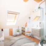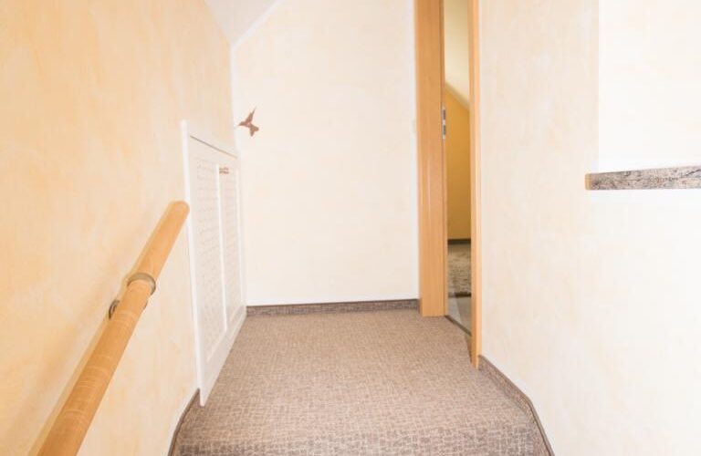 Das Treppenhaus und die Wohnräume im Dachgeschoss sind mit textilem Belag ausgelegt. Alle 3 Wohnräume und das große Bad mit Badewanne und Dusche sind praktisch geschnitten, geräumig und hell. Bodentiefe Fenster lassen viel Licht in die Zimmer. Auch der Spitzboden ist ausgebaut. Das kleine gemütliche Zimmer bietet neben einem Ausblick zur St. Nikolai Kirche auch viel Stauraum in den Einbauschränken.