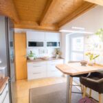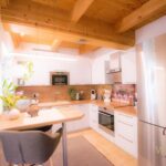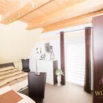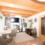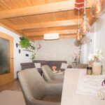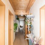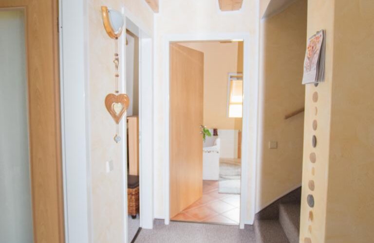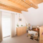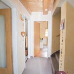 Besonders wohnlich und angenehm wirkt das Haus insgesamt durch die Holzbalkendecken und die Fußböden in warmen Farben.