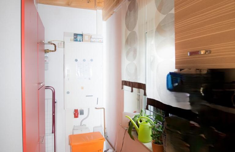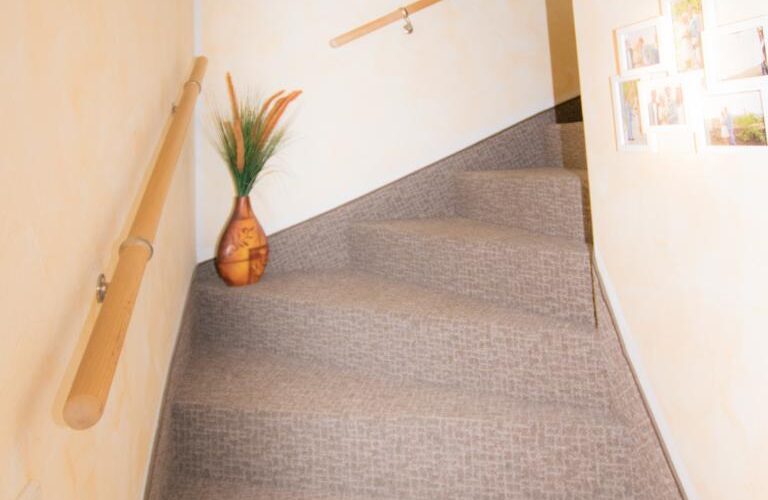 Die ca. 110 m² Fläche für das Wohnen erstrecken sich auf drei Etagen. Im Erdgeschoss gelegen sind, vom Hauseingang kommend, der Flur, das Gäste-WC, der Hauswirtschaftsraum mit Waschmaschinenanschluss und der Heizanlagenraum mit Warmwasserspeicher. Von der Küche erreichen sie auch das Carport und vom Wohnzimmer aus gelangen sie über die überdachte Terrasse in den Garten. Der Blick vom Wohnzimmer aus in den ruhigen und von außen nicht einsehbaren Garten ist einfach herrlich.