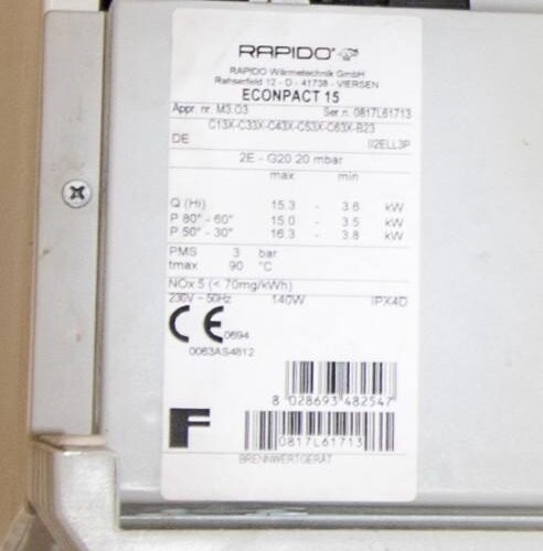Gasheizung Rapido Econpact 15 3,5 – 15 kW, WW-Speicher ca. 800 Liter